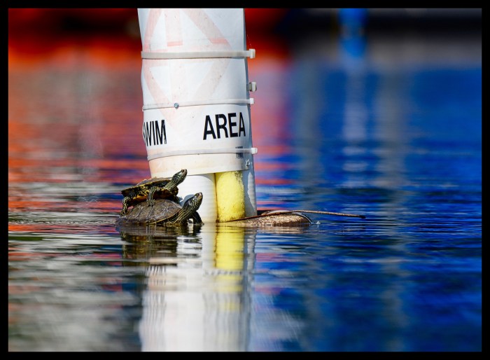 Thank you!🙂 The turtles were kind enough to stay on the buoy until I could paddle past them and capture the photo with the colors reflecting off the pontoon in the background.