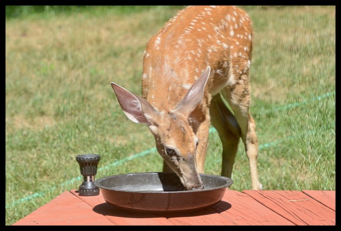 After surviving Gabbyβs barking, I think he would actually enjoy a little AC/DC.π It has been so much fun watching this fawn, although I was not happy to see him strike up a friendship with the turkey this morning.π