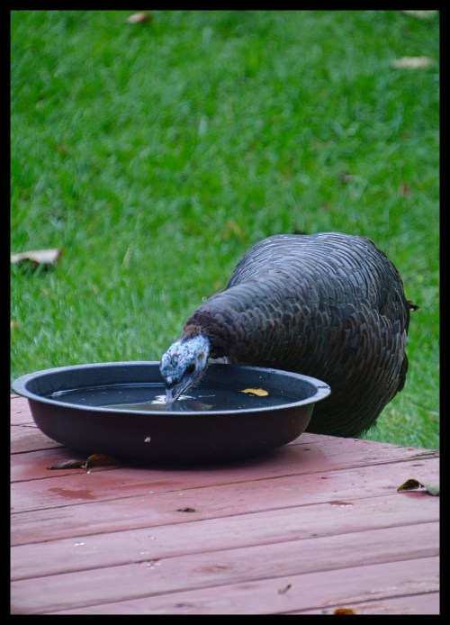 We watched the turkey stop by for a drink,