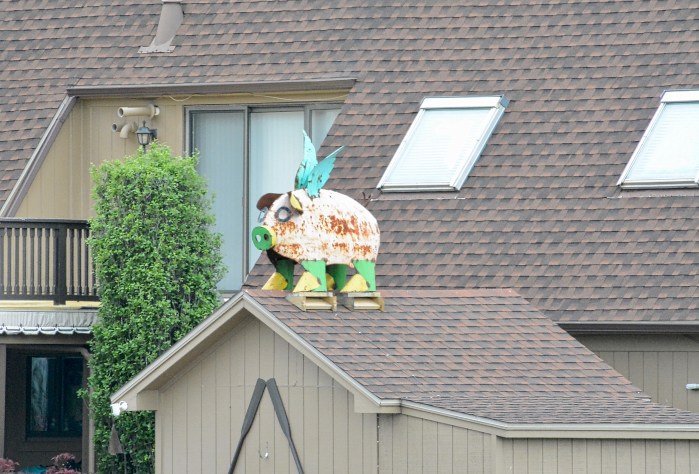 Thankfully I received inspiration from this flying pig to capture the photos and you may notice a very gray theme since the blue skies never arrived.