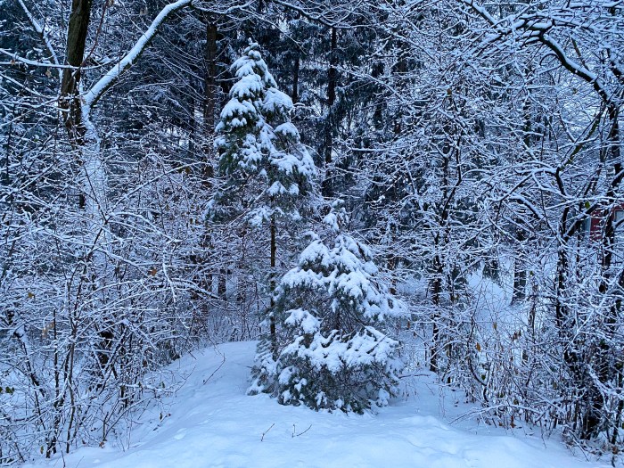 So pretty! We finally got some snow, but it didn’t cling to the trees like this, which is my favorite snow.