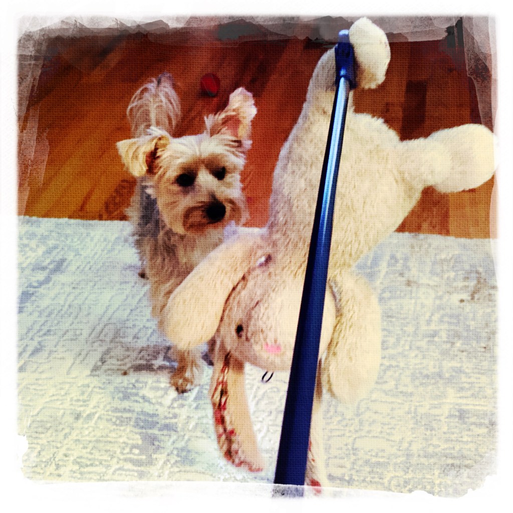 Harperโs quickly adjusting to my new grabber to pick everything up for playtime!๐พ๐